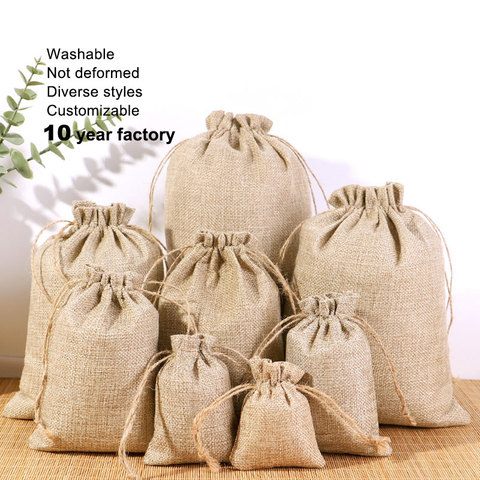 Stockage de la vie lin lin fin cordon bijoux emballage sac cordon cadeau petit tissu Shopping poussière cordon sacs