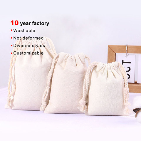 Sac d'emballage cadeau OEM en toile vierge recyclée écologique pour farine à pois Sac à poussière pour shopping avec cordon de serrage